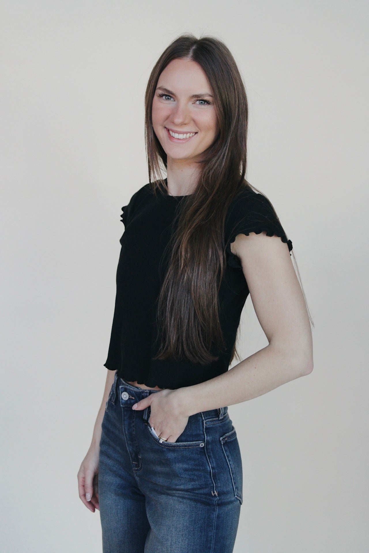 This adorable cropped tee features a soft textured waffle fabric for comfort and feminine ruffle edges that adds a subtle touch of style. This easy-to-wear tee pairs well with jeans or skirts for a casual, everyday look.
