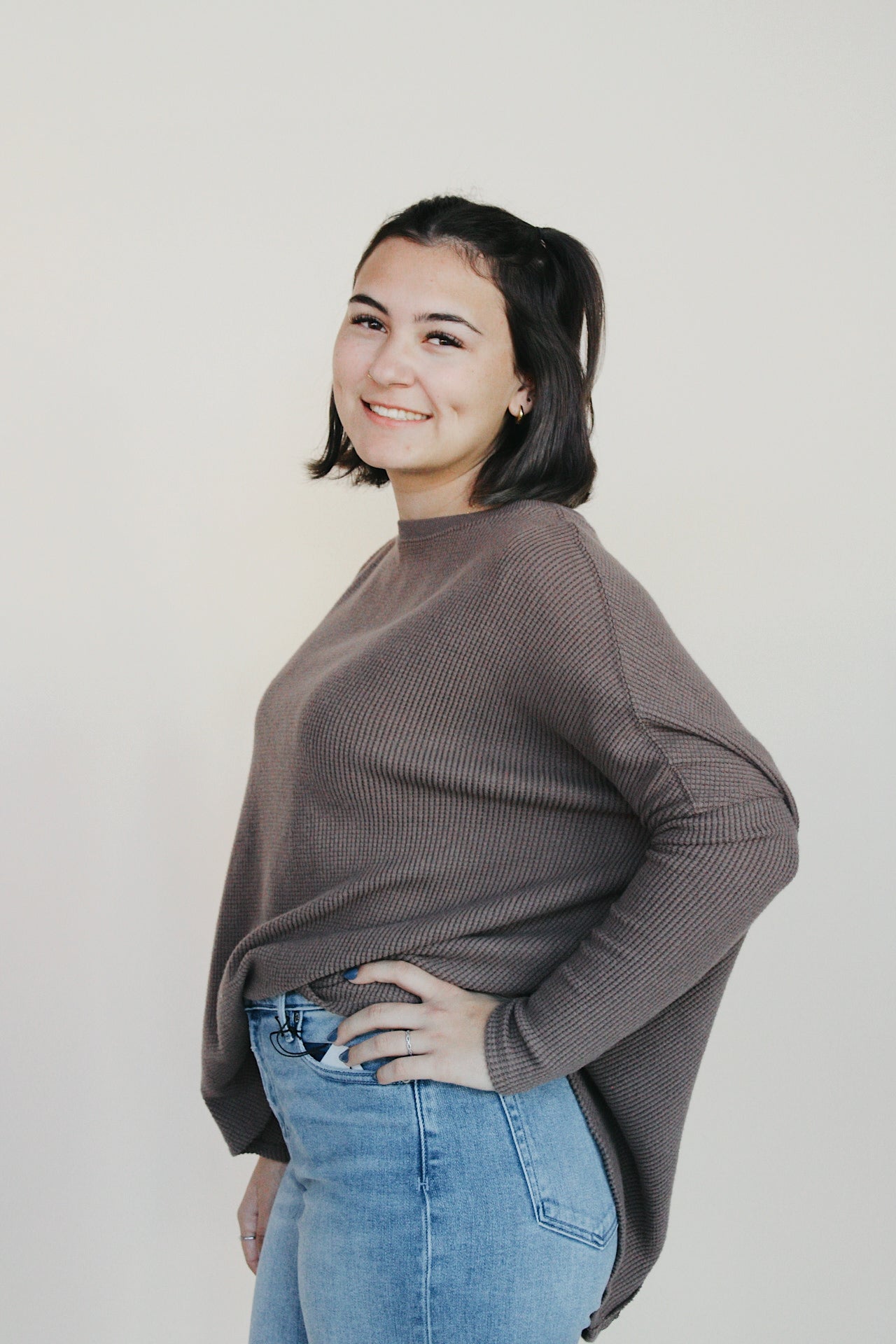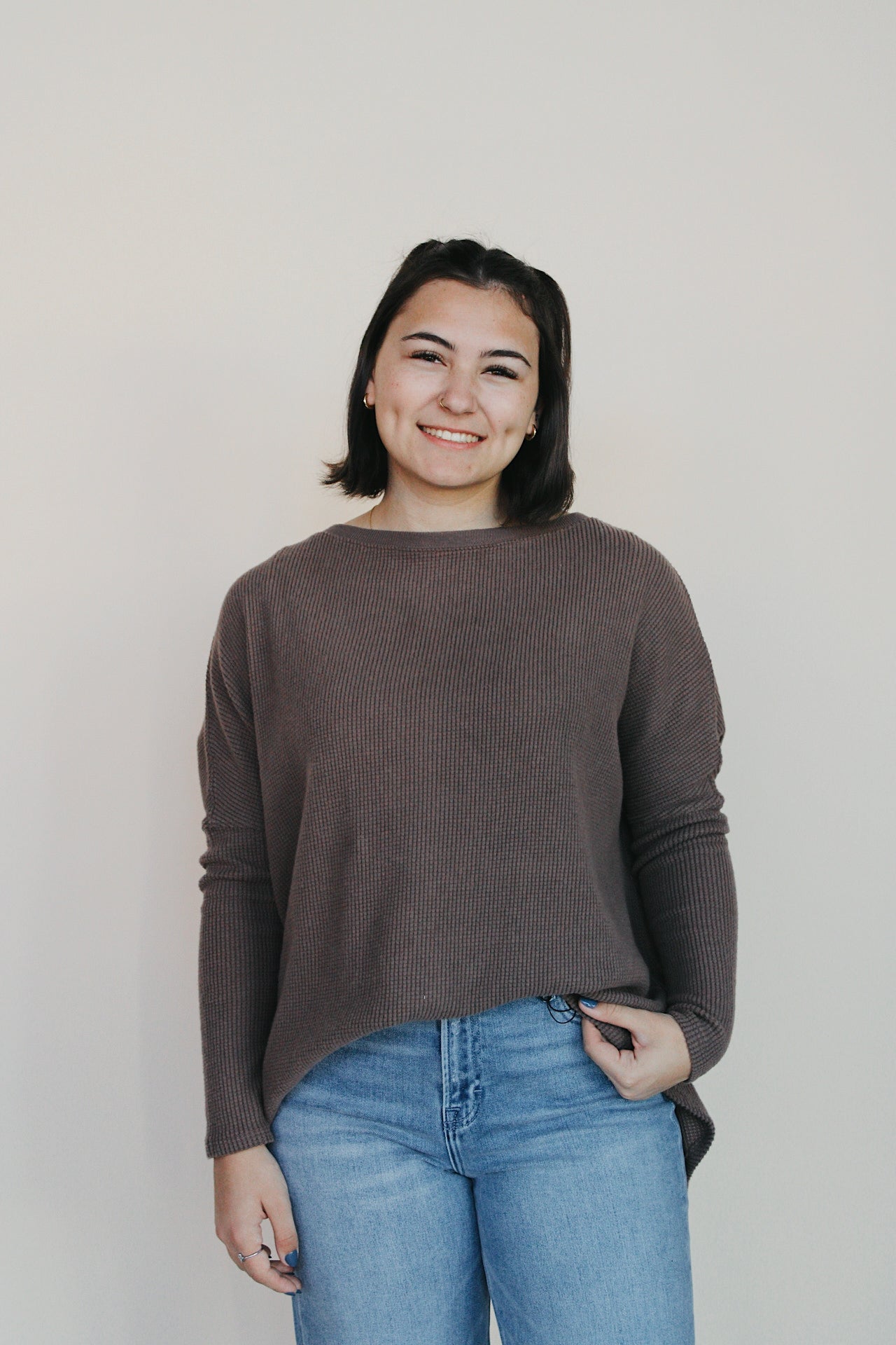 This Free People thermal long sleeve in a warm mocha color offers cozy comfort and everyday style. Its soft, lightweight fabric helps keep you warm, making it perfect for layering or wearing on its own during cooler days. The relaxed fit ensures ease of movement while maintaining a flattering look.