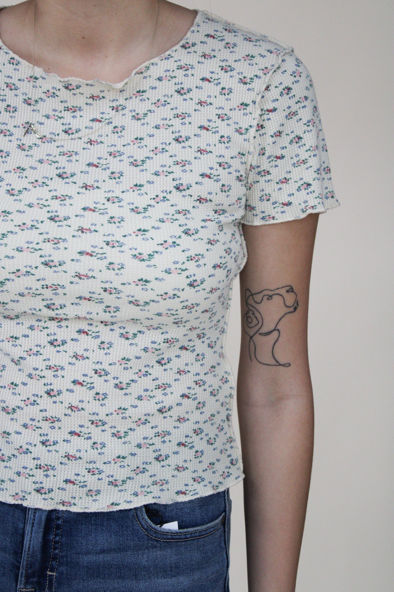 This soft waffle knit fabric meets delicate floral design in this charming short sleeve top. The buttercream base provides a versatile neutral backdrop for the pretty botanical print, making it easy to style with your favorite bottoms. Perfect for casual days or layering, this piece brings effortless elegance to any wardrobe.