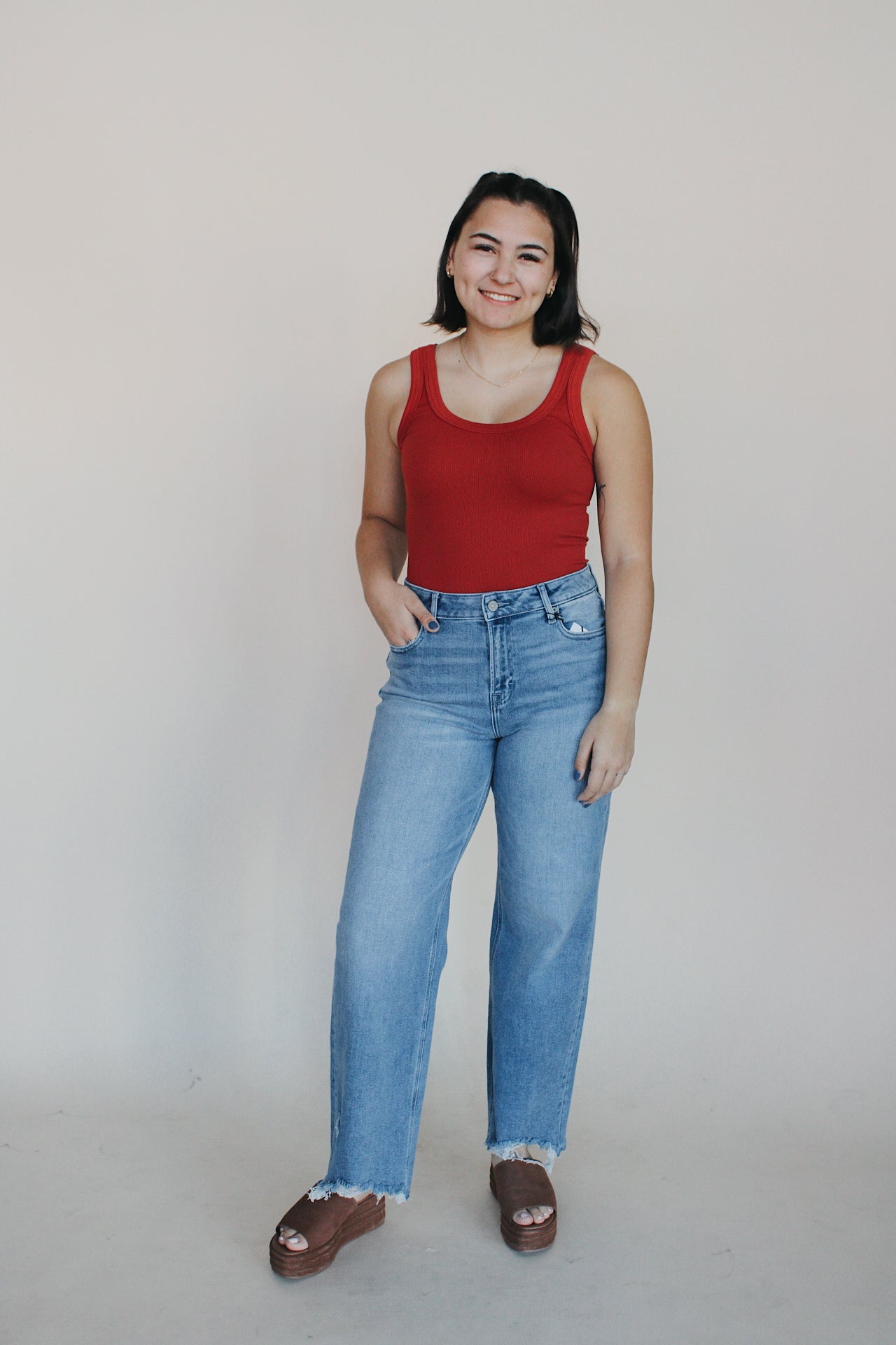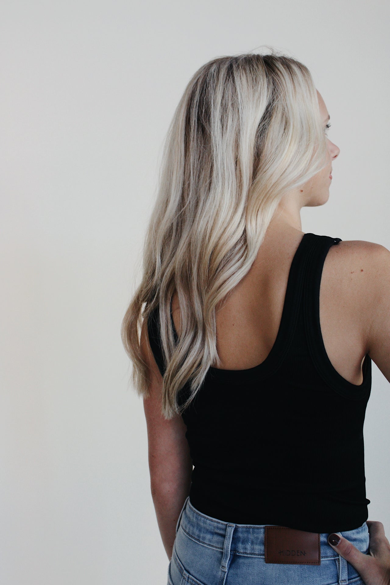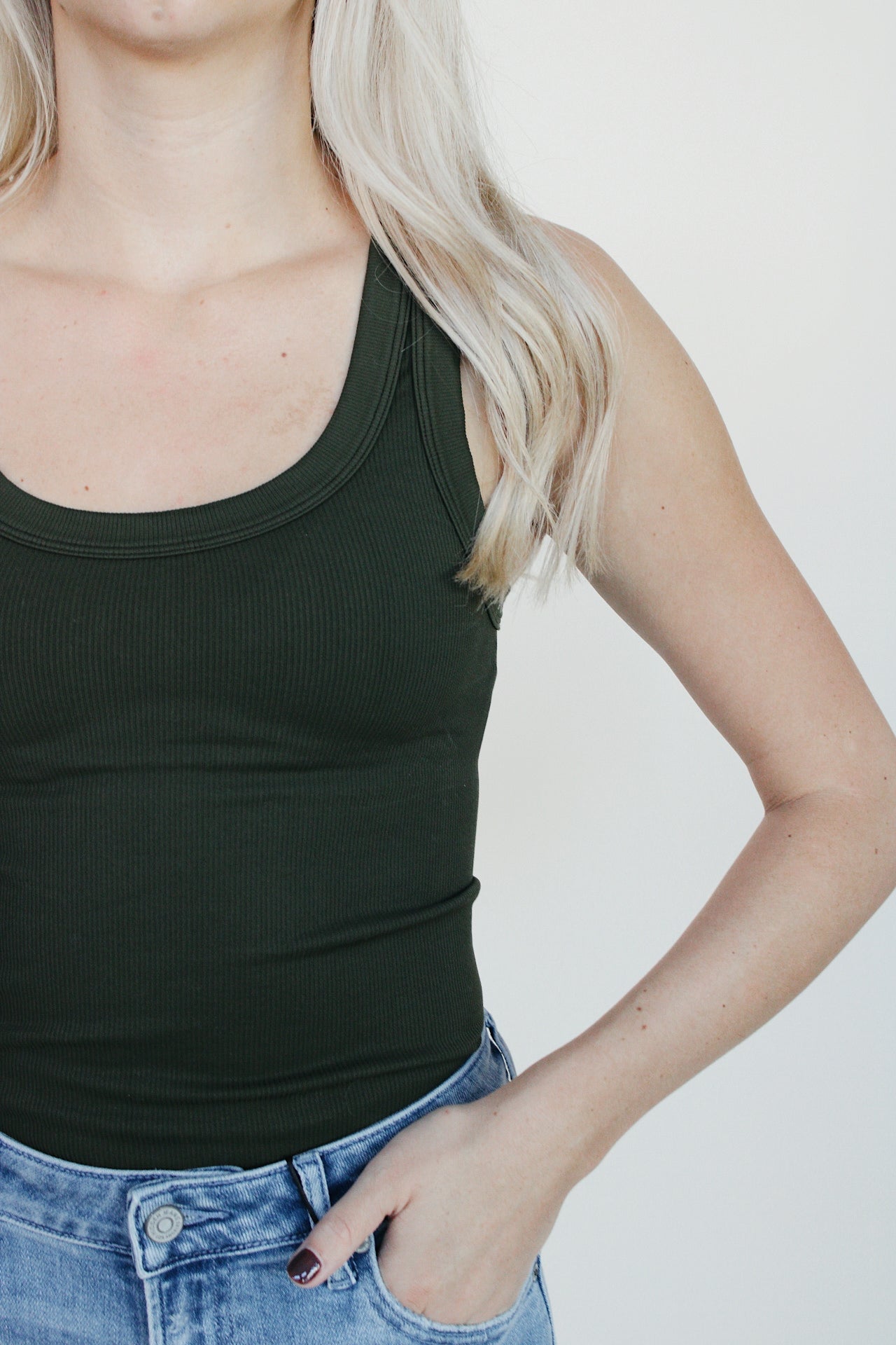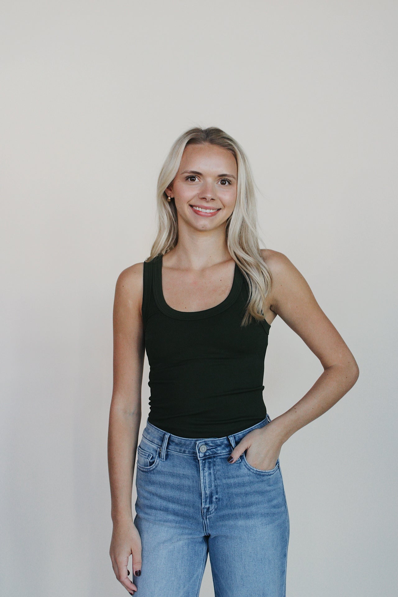 This reversible ribbed tank offers two stylish necklines—a high neck and a scoop neck—in one versatile piece. Made with perfect stretch, it fits comfortably in one size, adapting to your shape for an easy, flattering wear.