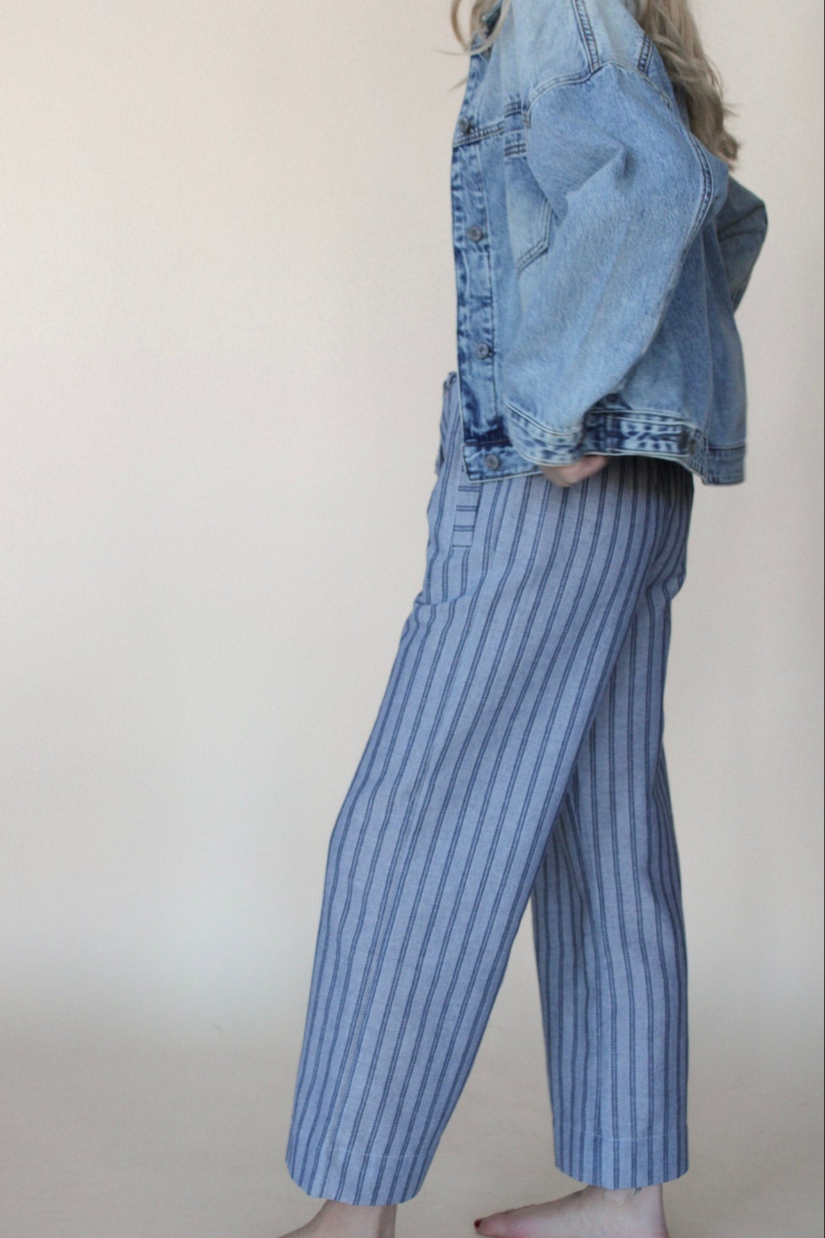 Effortless style meets comfort in these navy striped wide leg pants. The elastic drawstring waist provides a customizable fit that moves with you, while the relaxed silhouette flatters all body types. The perfect pant to add to your wardrobe.